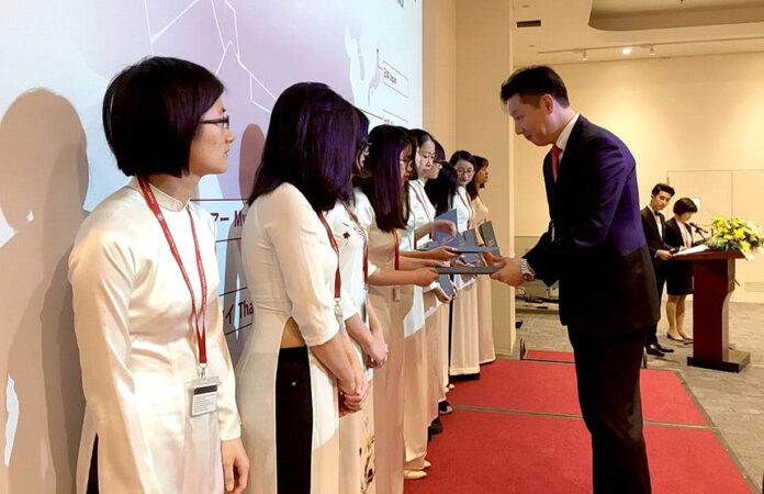 This year, there are 60 students from Foreign Trade University and University of Social Sciences and Humanities -National University Hanoi. At the ceremony, representative of students who received Aeon’s scholarships has presented “My Dreams” in Japanese and English, have the opportunity to exchange with guests from the representative agencies of Japan, the universities, thereby thinking more about their future.