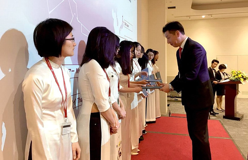 Students of Foreign Trade University received a scholarship certificate from the Aeon Group of Vietnam