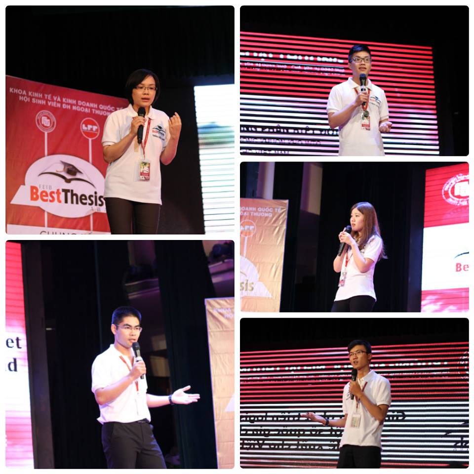 The outstanding thesis will have to go through several rounds of competition includes grading of a thesis, presentation, thesis defense before the jury and the public. During the period from May 10th, 2016 to June 10th, 2016, students who are interested can apply for exam registration the Organizing Committee at the Student Union office of Foreign Trade University, room B110 (first floor Building B).