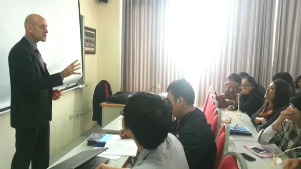 On March 17th, 2015, Prof. David Rooney, who is also an examiners of “Mekong Challenging Business” International Competition performed Demo class for third year students of Bachelor of Finance program of Faculty of International Education – Foreign Trade University.