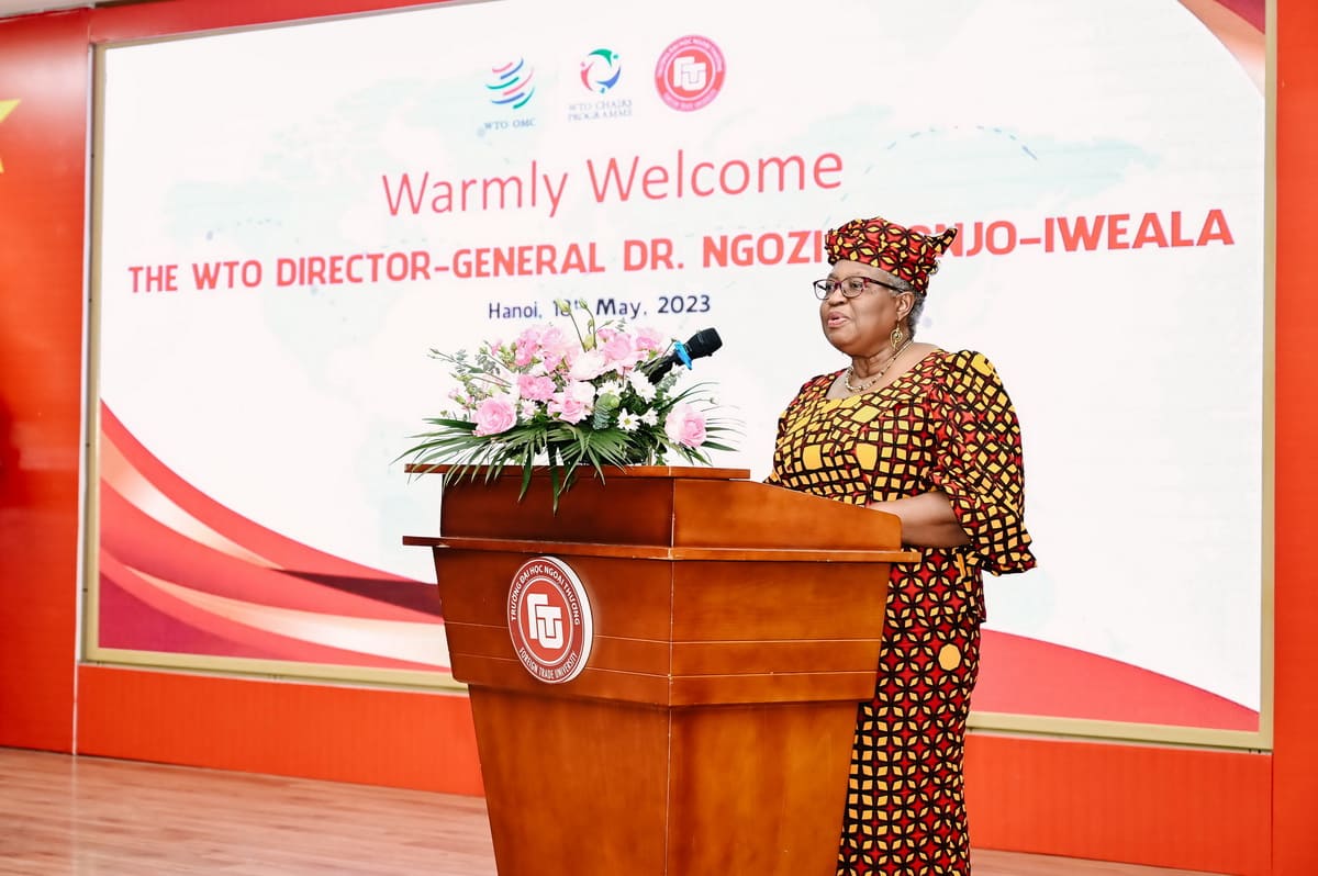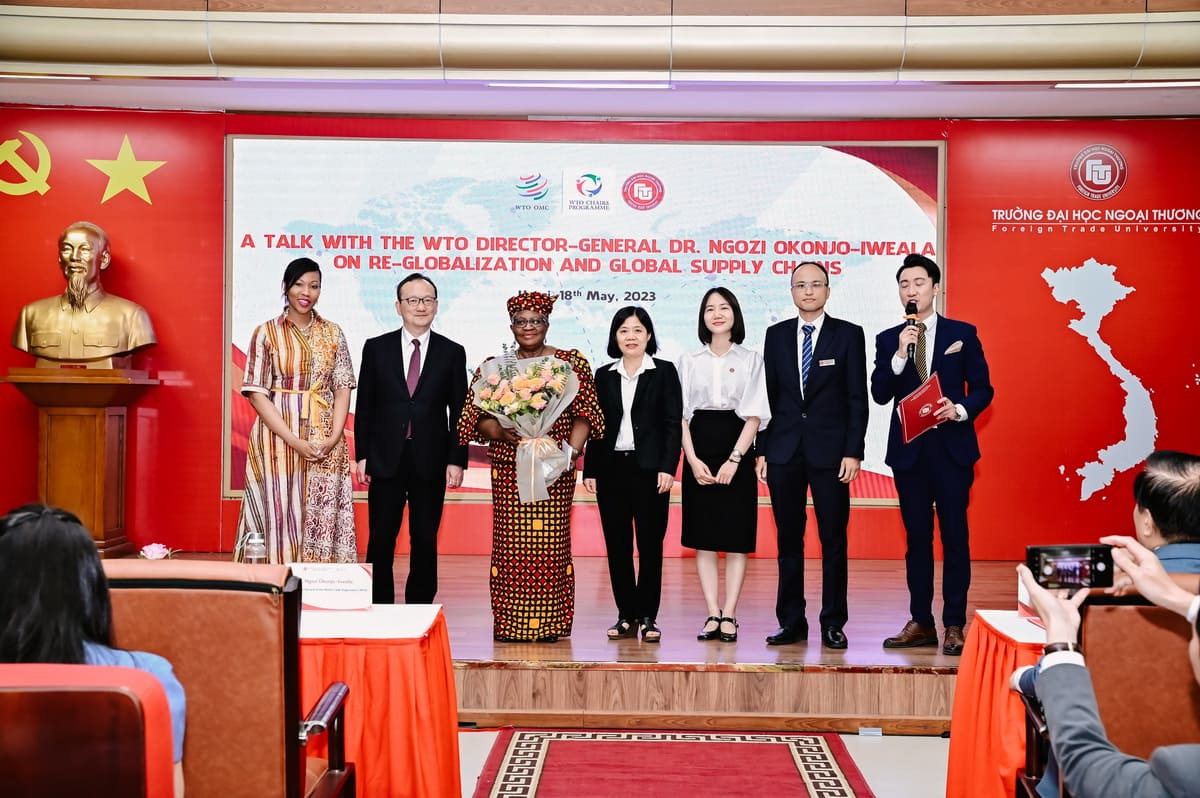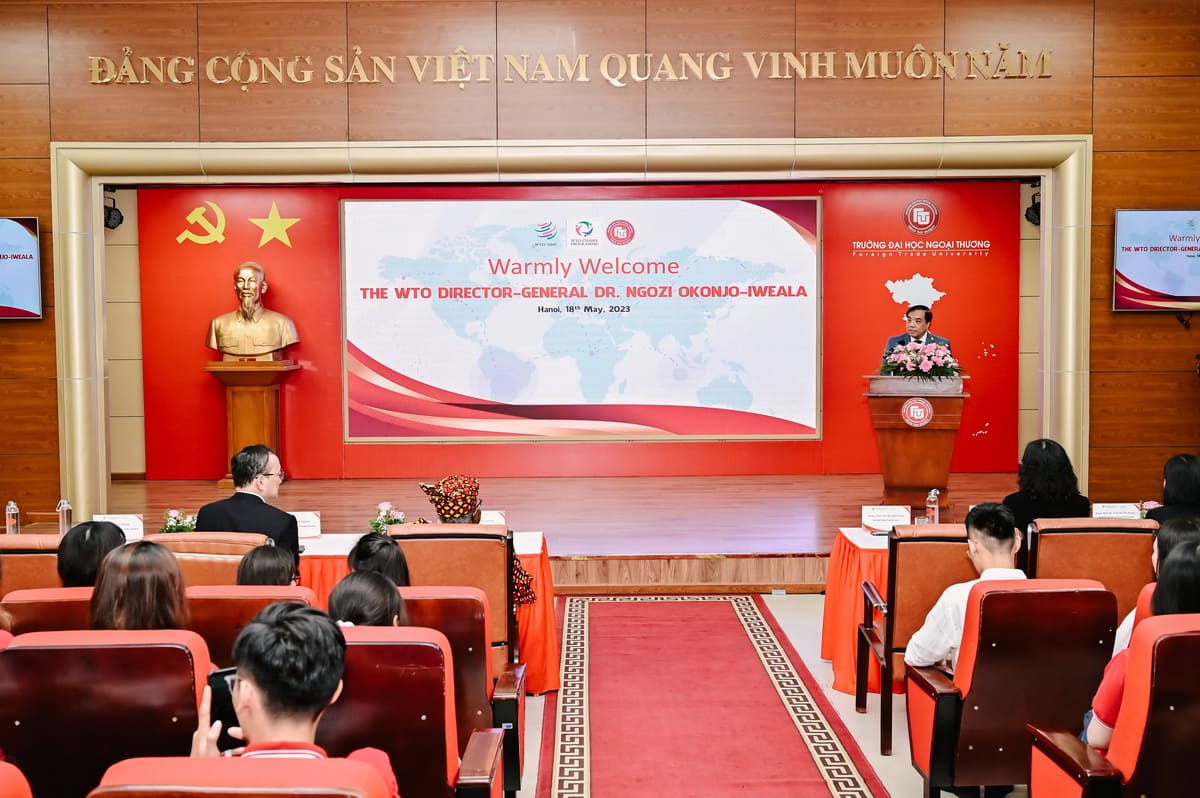 As part of a brief visit to Vietnam at the invitation from the Government of Vietnam, Dr. Ngozi Okonjo-Iweala, the Director-General of the World Trade Organization (WTO), graced the Foreign Trade University on the afternoon of May 18, 2023, for an enlightening session on trade and an exchange with the university’s teachers and students.