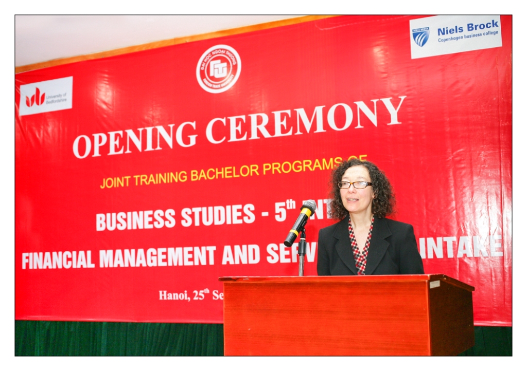 Faculty of International Education, Foreign Trade University held a solemn opening ceremony of the training bachelor programs with the presence of Danish Ambassador to Vietnam, Representative of British Embassy in Vietnam, President of Foreign Trade University, Director of Niels Brock Copenhagen Business College (Denmark) and lecturers of the programs.