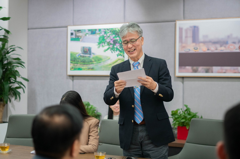 At the ceremony, Mr. Yoneda Kazuhiro expressed his gratitude to the Board of Directors of Foreign Trade University, along with the entire Board of Directors and staff of VJCC Institute for always accompanying and striving to make VJCC Institute develop more and more and be ready for future innovations. He cherished the memorable memories during his tenure and affirmed that the affection and support from the entire Board of Directors of the University and the VJCC team was the great motivation for him to have inspiring working days. Mr. Yoneda also shared that accompanying VJCC was the last train in his career journey, and he believed that expanding the cooperation network between Vietnam and Japan in the fields of academia and business production would help the cooperative relationship between the two countries become deeper, more effective and more meaningful.