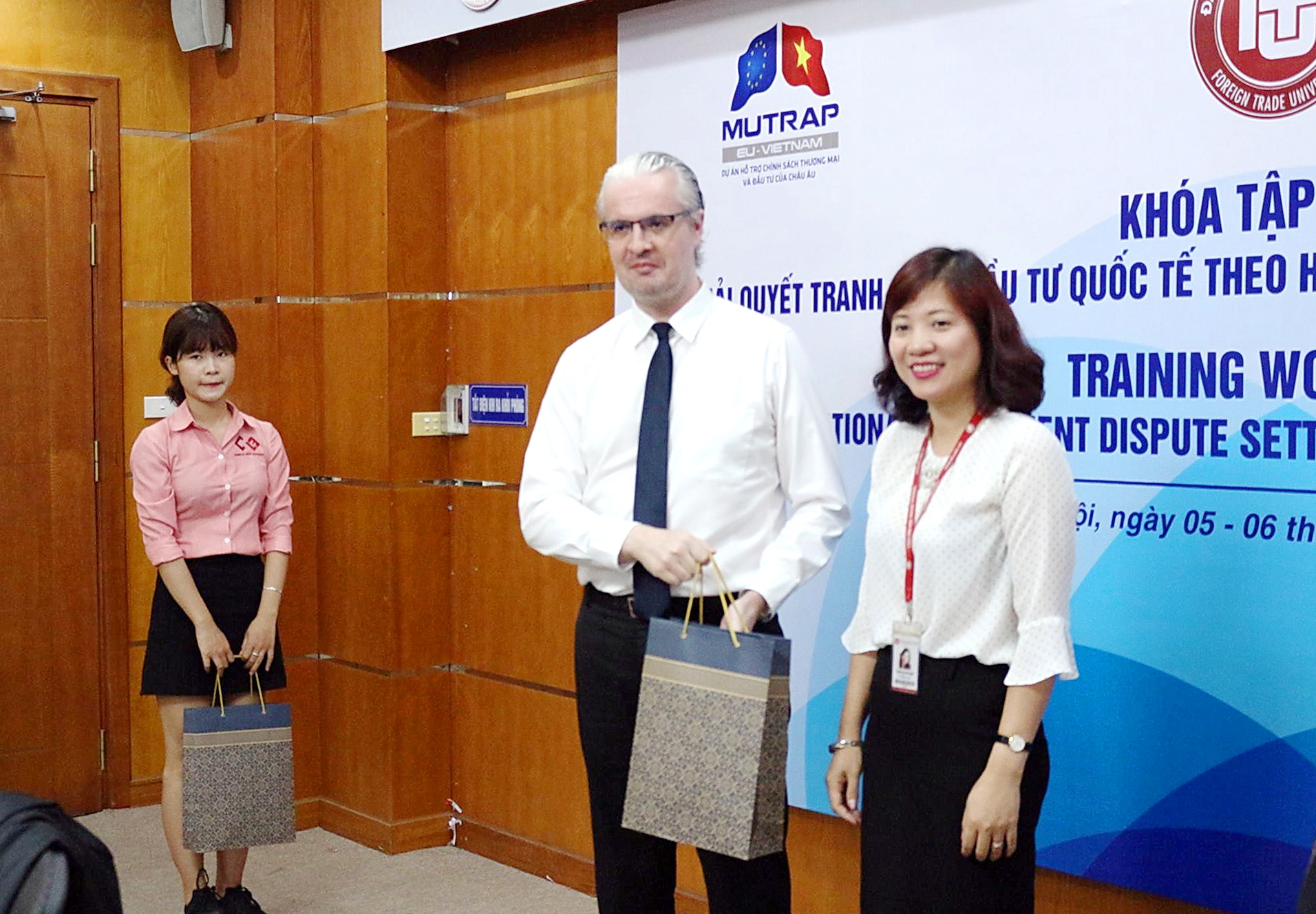 From right to left: Assoc. Prof. Dr. Dao Thi Thu Giang – Vice President of FTU, Prof. Julien Chaisse, studentLet’s notice some important points of the Training Workshop: