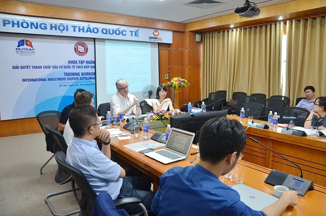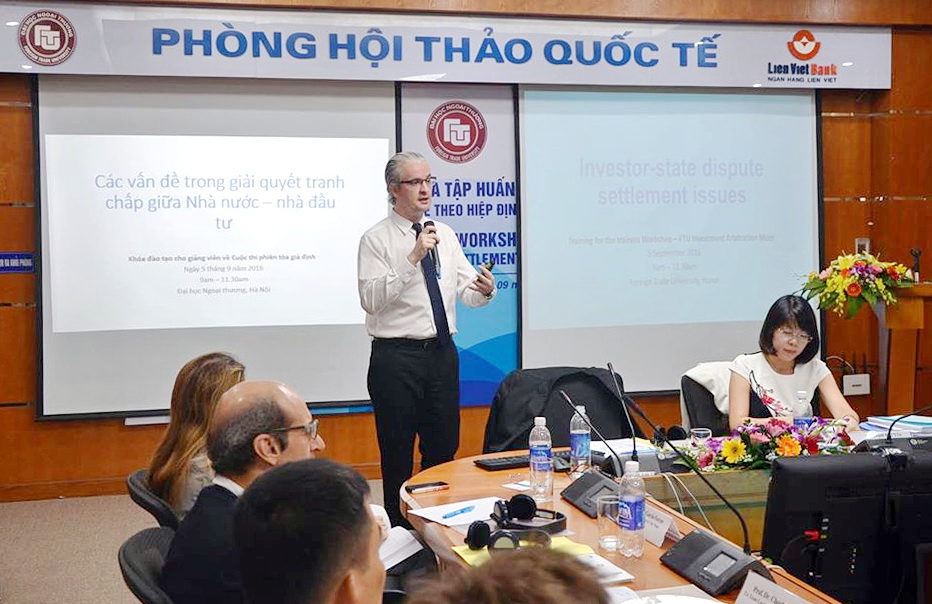 In two days (5th-6th, September, 2016), Training Workshop “International Investment Dispute Settlement under EU – Vietnam Free Trade Agreement” was held at Lien Viet Conference Room, 10th Floor, A Building, Foreign Trade University, 91 Chua Lang, Hanoi with the participation of guest lecturers, representatives of EU delegation in Vietnam, lecturers of Universities & Colleges in CLE’s network and representatives of teams applying FIAM.