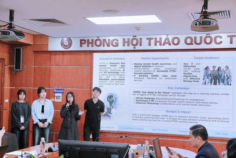 On the side of Foreign Trade University, there were Assoc. Prof. Dr. Le Thi Thu Thuy – Chairwoman of the Board of Trustees; Assoc. Prof. Dr. Dao Ngoc Tien – Vice President; Dr. Bui Lien Ha – Head of the Department of Political and Student Affairs; Dr. Nguyen Thi Viet Hoa – Vice Dean of the School of Economics and International Business; Dr. Nguyen Ngoc Dat – Vice Dean of the Faculty of International Education; Assoc. Prof. Dr. Nguyen Thi Binh – Head of the Division of Science and Technology Management, School of Economics and International Business; Assoc. Prof. Dr. Nguyen Thanh Binh – Head of the Division of Marketing & Communication, School of Economics and International Business; along with teachers who are mentors, lecturers, judges and students.