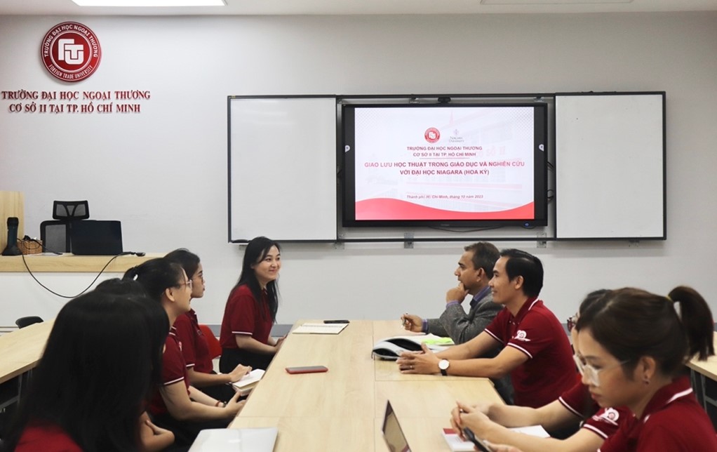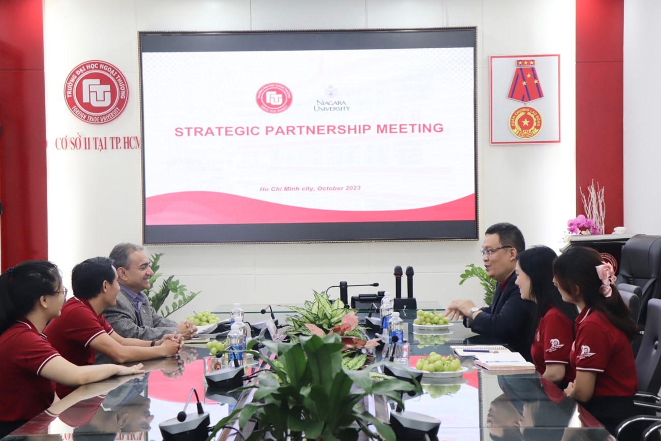 Attending the meeting with the delegation from the University of Adelaide, Foreign Trade University was represented by Assoc. Prof. Dr. Dao Ngoc Tien – Vice President, Assoc. Prof. Dr. Tu Thuy Anh – Editor-in-Chief of JIEM Journal, Dr. Vu Huyen Phuong – Deputy Head of the Science Management Department, and other university officials.