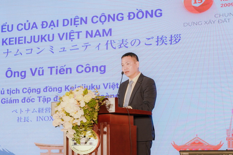 On behalf of over 1,000 Keieijuku community members, Mr. Vu Tien Cong, Vice President of Keieijuku Vietnam and CEO of Hoang Vu Inox Group, expressed deep gratitude to the Embassy of Japan in Vietnam, Japanese organizations, Foreign Trade University, VJCC, and program lecturers for their unwavering support. He also thanked the Keieijuku community members for continuously sharing knowledge, fostering collaboration, and promoting ethical business values, contributing collectively to Vietnam’s development.