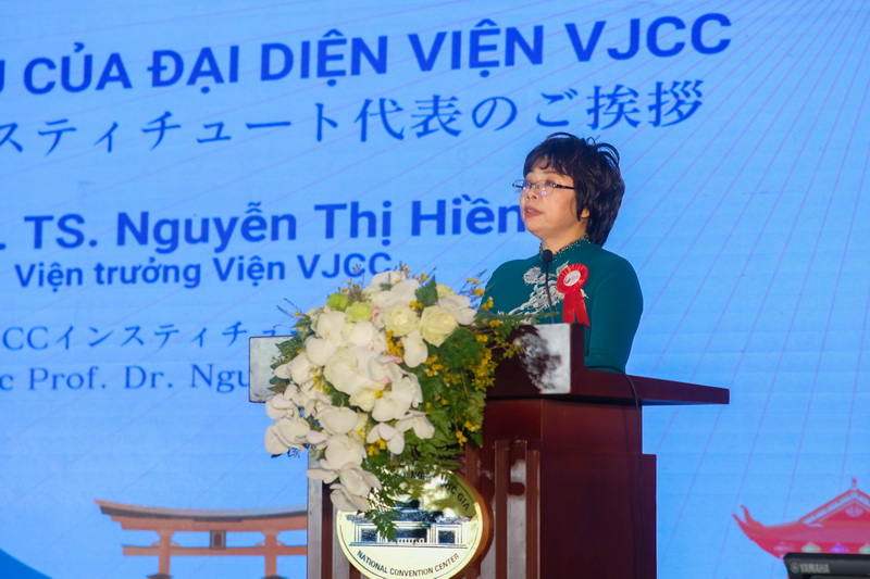 Speaking at the ceremony, Assoc. Prof. Dr. Nguyen Thi Hien, Director of VJCC, affirmed, “The success of the Keieijuku program today is the culmination of collaborative efforts among all involved organizations, laying a strong foundation and creating opportunities for the program’s development.” On behalf of the organizing unit, Assoc. Prof. Dr. Nguyen Thi Hien expressed sincere gratitude to the Embassy of Japan, JICA, and Japanese partners for their continuous support over the past 15 years. She also extended her heartfelt appreciation to the leadership of Foreign Trade University and its departments for their unwavering guidance and support in positioning the Vietnam – Japan Institute for Human Resources Development as a key player in Keieijuku’s growth. She further thanked the faculty members for their dedicated efforts in delivering valuable lessons to students. Over the past 15 years, lecturers have accompanied and devoted themselves to the sustainable development of the Keieijuku program, embodying resilience, ethics, and professionalism, while fostering the growth of Vietnamese entrepreneurs.