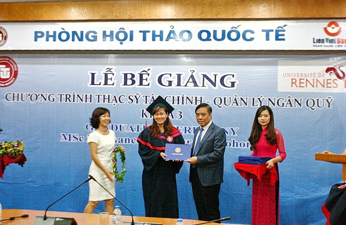 During the ceremony, Assoc. Prof. Dr. Bui Anh Tuan – President of Foreign Trade University has awarded the Master of Finance certificate for graduate students, which was authorized by the University of Rennes 1.