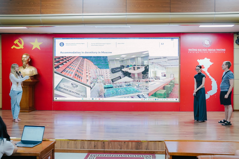 Contributing to the success of the session was the participation of current international students studying at FTU, who acted as enthusiastic ambassadors by introducing their home universities and highlighting unique aspects of their academic programs, educational environment, and cultures. The presentations by these “home” representatives helped FTU students imagine what life would be like when studying abroad. It also inspired and motivated them to look forward to their own upcoming international academic journeys.