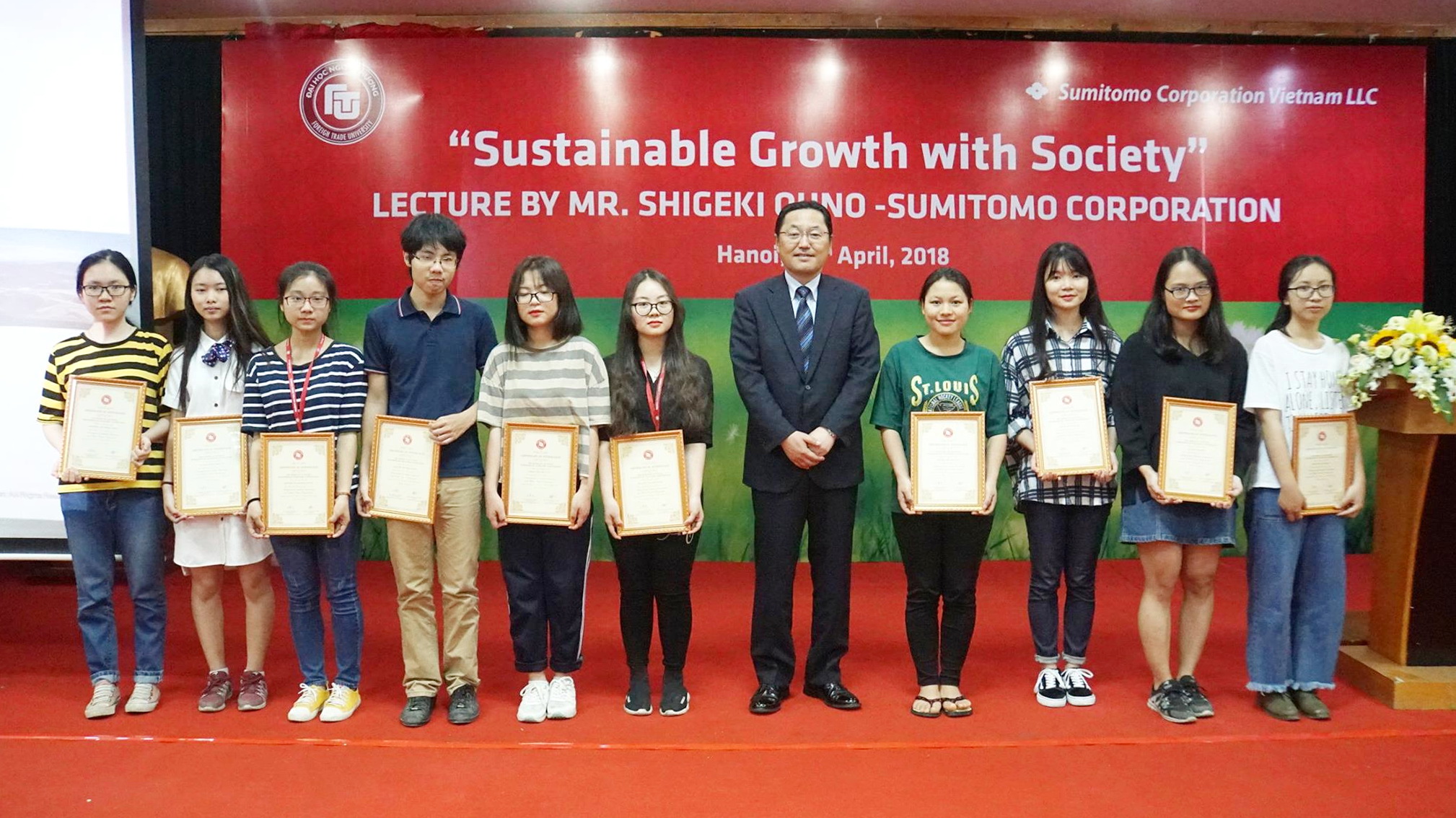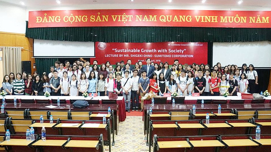 On April 24th, 2018, Foreign Trade University (FTU) welcomed a delegation of experts from the Sumitomo Group to lecture with students of the University.