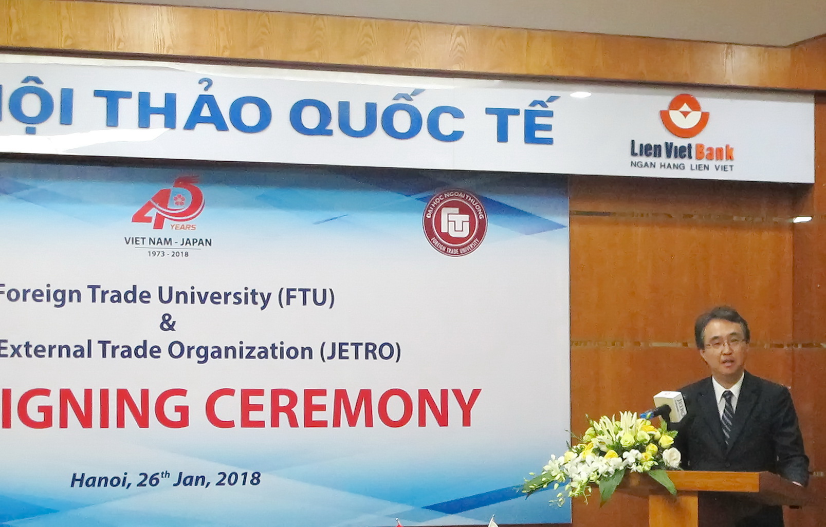 On January 26th, 2018, Foreign Trade University (FTU) held a signing ceremony of a memorandum of agreement with the Japan External Trade Organization (JETRO).