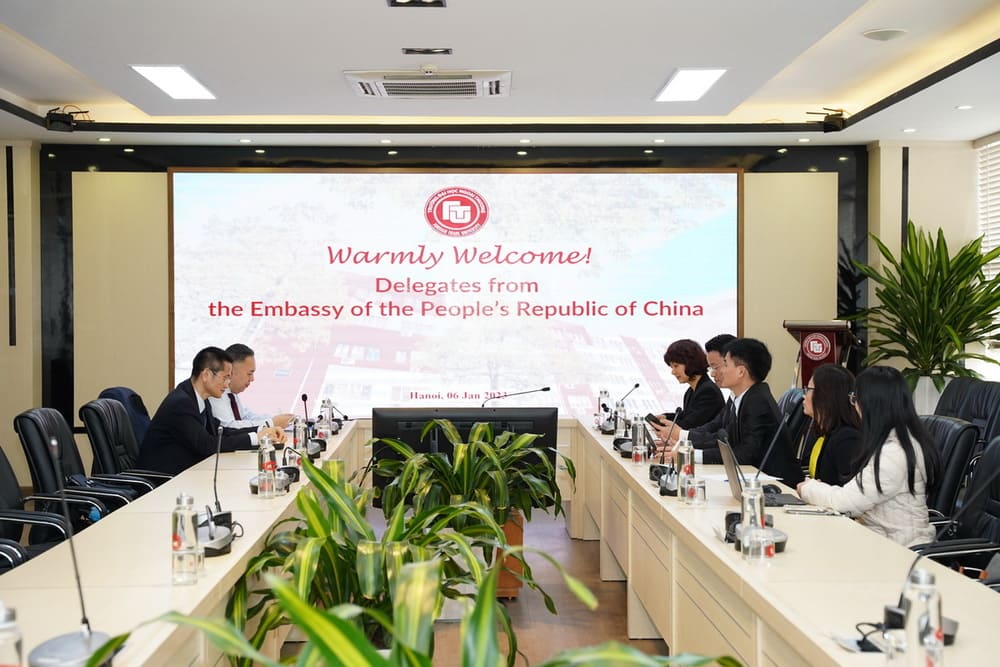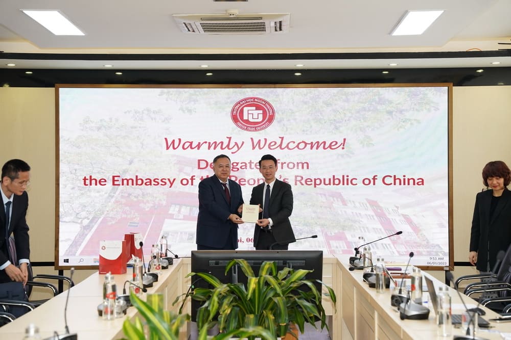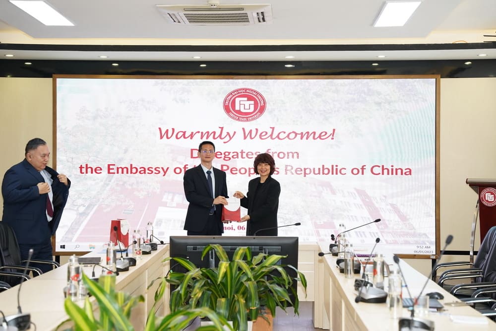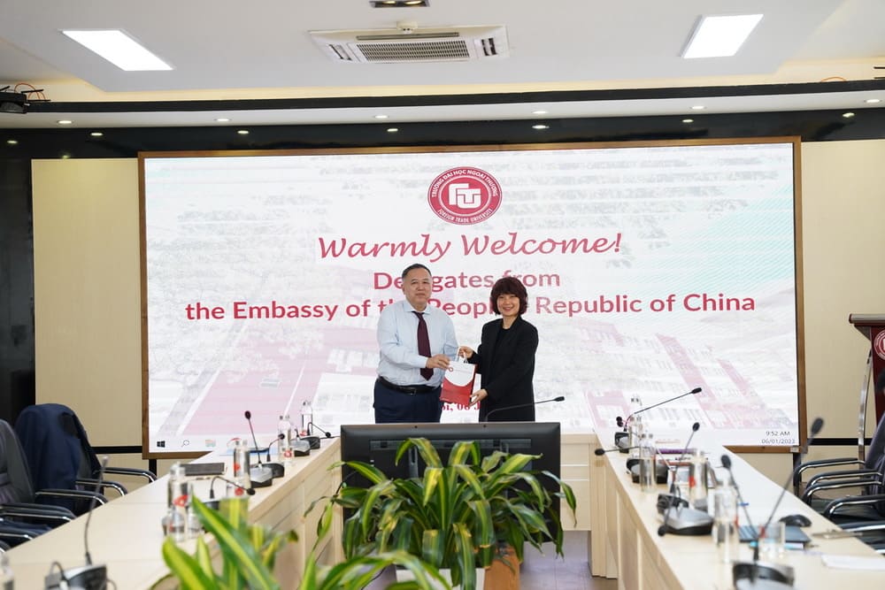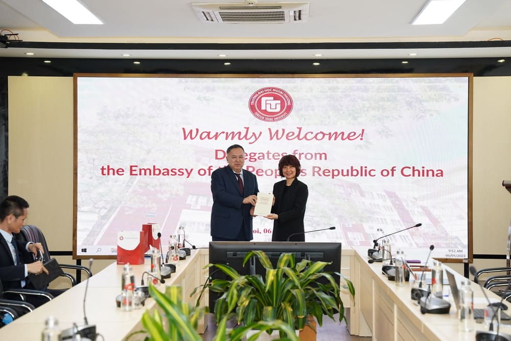 On January 6, 2023, Assoc. Prof. Dr.Pham Thu Huong – Vice President of Foreign Trade University chaired a reception and working session with Education Counselor Trinh Dai Vi and First Secretary Vuong Dinh Quan of the Chinese Embassy in Vietnam.
