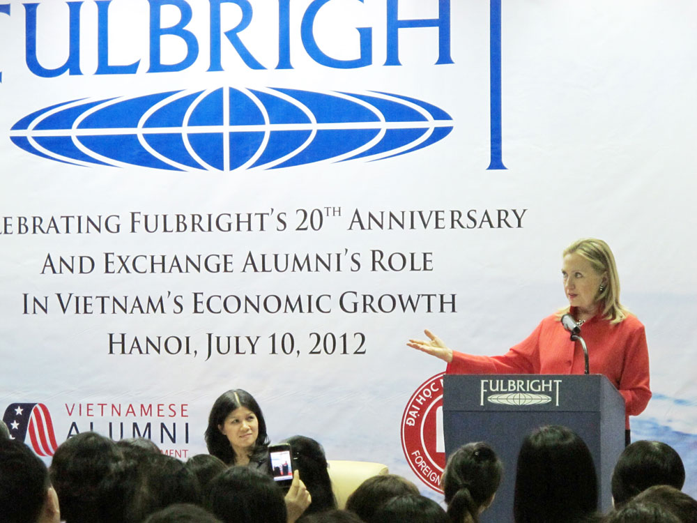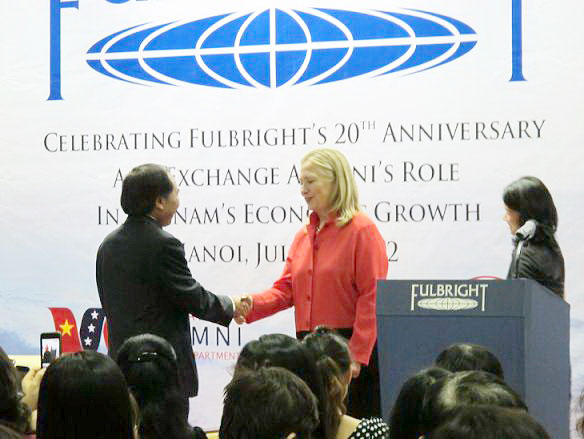 Secretary of State Hillary Clinton had also emphasized impression and admiration for what Vietnam had achieved in the past 20 years, and one of the things she admired most was the impressive recovery and efforts to improve lives, society and especially the growing role of women in Vietnam. She reminded the alumni of the Fulbright scholarship program and FTU students about the opportunities of young people in a globalized world and our tasks are always creating new opportunities, opening the door to the next generation of youth so they can walk through that door to become human benefit society.