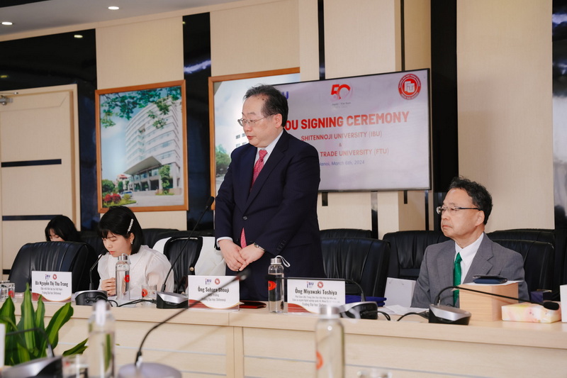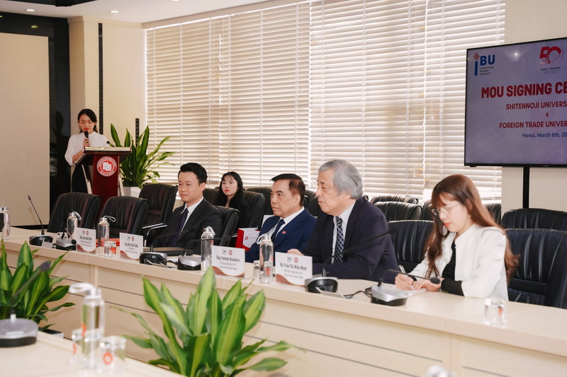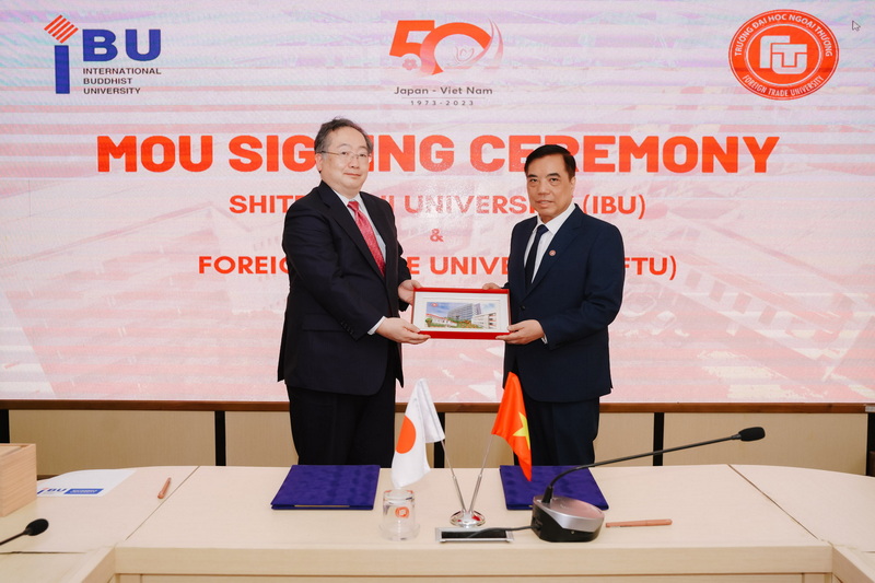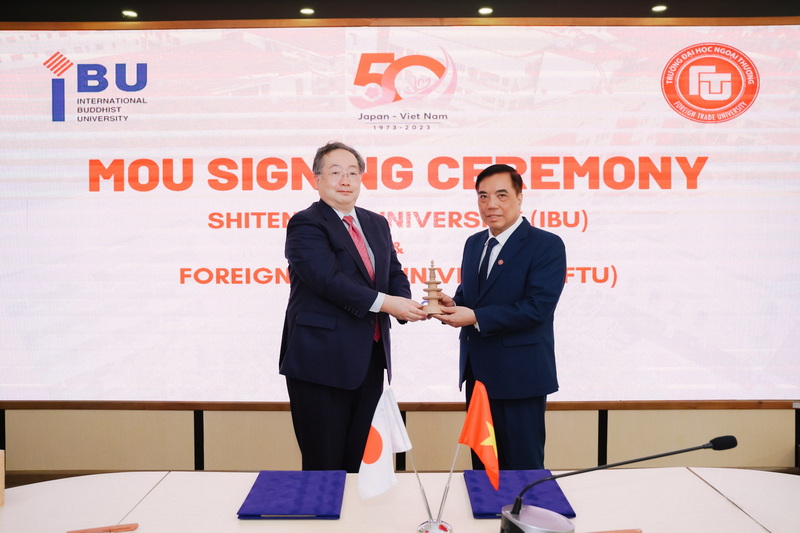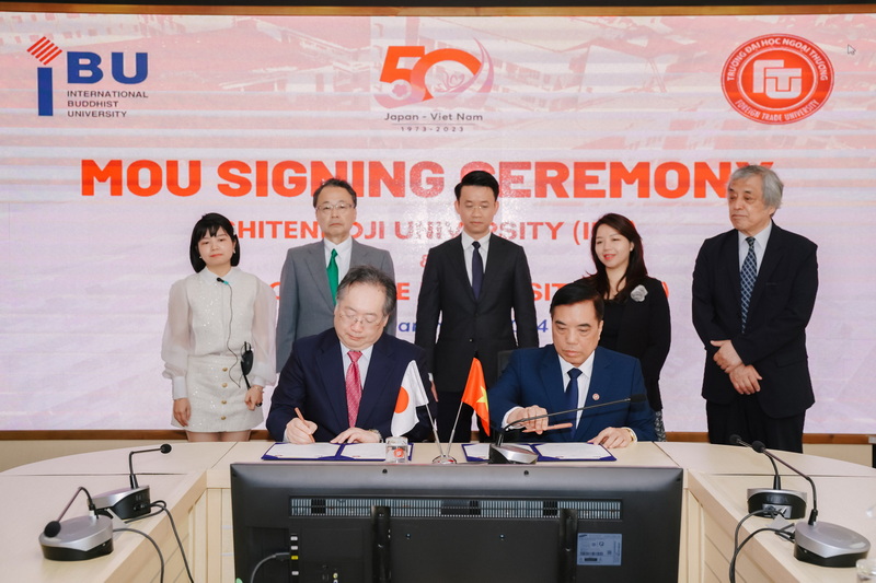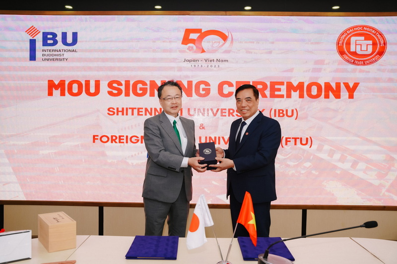 On March 6, 2024, Foreign Trade University organized the signing ceremony of a Memorandum of Understanding (MoU) with Shitennoji University (IBU) (Japan) to collaborate on training activities, student, faculty, and staff exchanges, and research activities. This agreement is effective for five years, from 2023 to 2028.