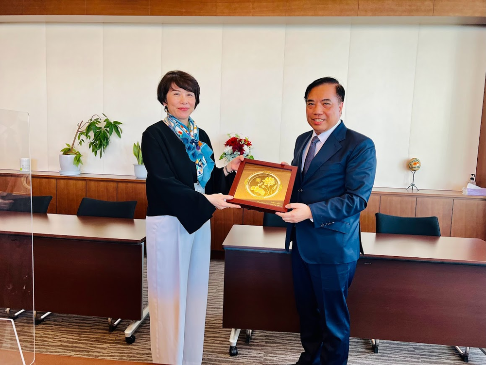 Within the framework of a working visit to Japan, on the morning of November 24, 2022, the delegation of Foreign Trade University led by Assoc. Prof. Dr. Bui Anh Tuan – President of the University visited the Head Office of Japan International Cooperation Agency (JICA) and worked with Ms. Imoto Sachiko – Vice President of JICA Japan with the goal of consolidating and strengthening the cooperative relationship between the two sides in the new phase of the Project of Vietnam – Japan Human Resource Corporation Center (VJCC).