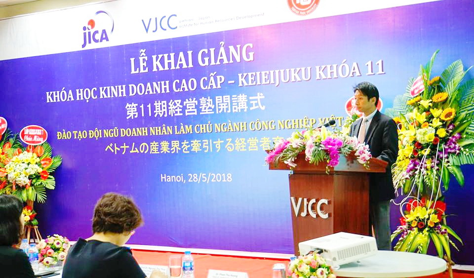 On August 24th, 2018, the closing ceremony of the 9th and 10th Keieijuku Business Courses – a course provided for managers of Vietnamese manufacturing enterprises and sponsored by Japanese Government – took place at Vietnam-Japan Institute for Human Resources Development (VJCC).