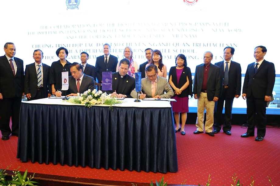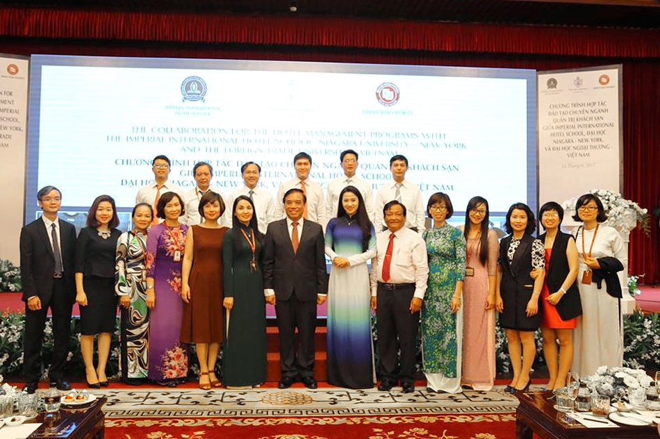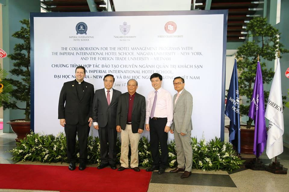 On June 15th, 2017, there was a signing ceremony of cooperation agreement for the Hotel Management Programs with the Imperial Intenational Hotel School, Niagara University – New York and the Foreign Trade University – Vietnam took place at Ho Chi Minh city.
