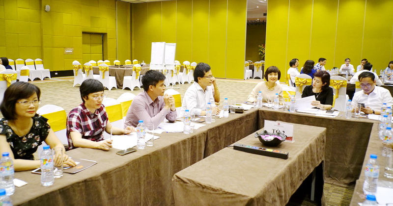 At the second session, under the direction of the President – Assoc. Prof. Dr. Bui Anh Tuan and the Vice Presidents including Assoc. Prof. Dr. Dao Thi Thu Giang, Assoc. Prof. Dr. Le Thi Thu Thuy, Assoc. Prof. Dr. Nguyen Thu Thuy and other groups of leaders of the departments discussed and presented some basic solutions to improve the quality of the university in terms of: (1) Strategy, organization, management and personnel; (2) Training programs and learners; (3) Scientific research, international cooperation; (4) Library, facilities. All groups exchange very enthusiastic about the existing problems of the university and provided solutions to overcome these problems and promote advantages to improve the quality of education, toward the quality standards of the university, regional and international in the future.