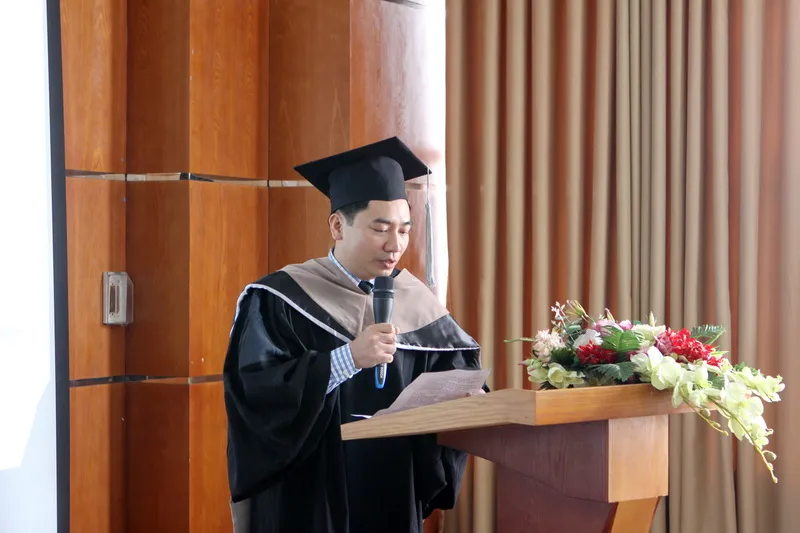 Mr. Vu Truong Thanh (VAECO Aeronautical Engineering Company) on behalf of the new Master graduates thanked the leaders of the two schools and the other teachers