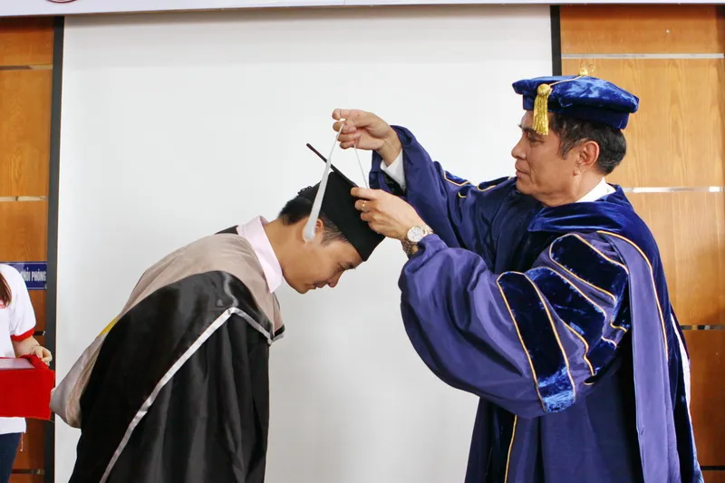 Principal of Meiho University switches tassel side for the new master graduates from right to left to certify students who have completed the course and achieved master degree