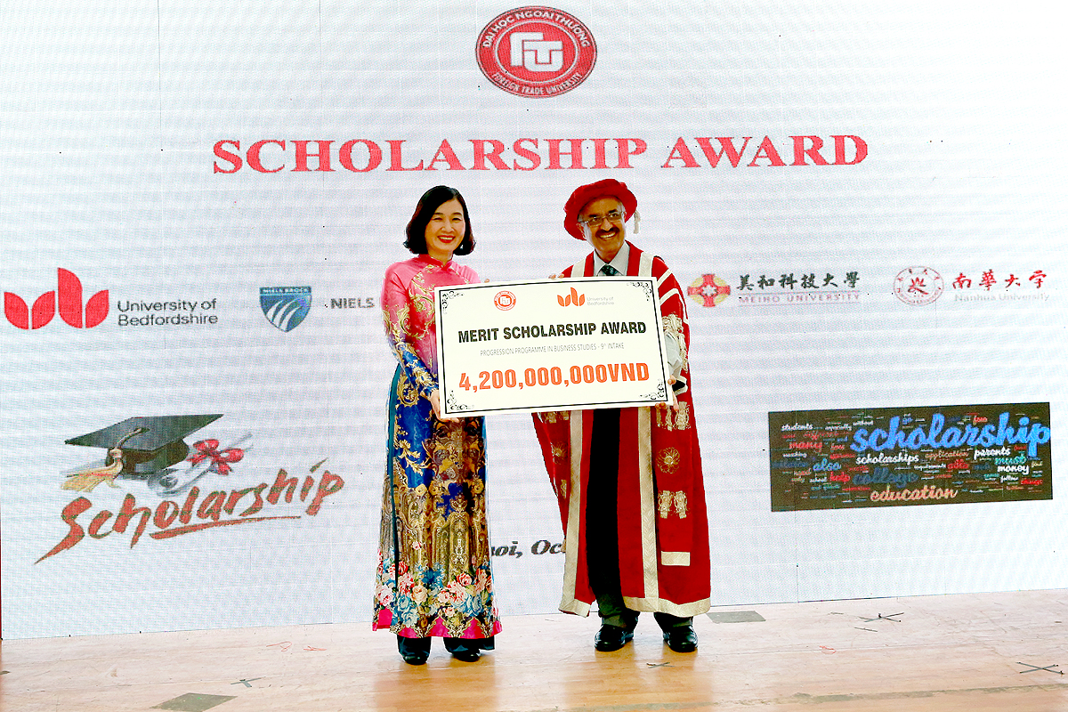 Students of associated programs are always appreciated by partner univesities. To encourage students, Univesity of Bedfordshire offered a scholarship of 4.2 billion for students in Class 9 and Business degree program of Niels Brocks Business University, Denmark also offered a scholarship of 850 million for Finance students, Namhwa Univesity offered a scholarship of 1.1 billion and Meiho University offered 1 945 million scholarship for students class 1 of Tourism and Hospitality Administration Program. This will be the great encouragement for students in a new acadamic year.