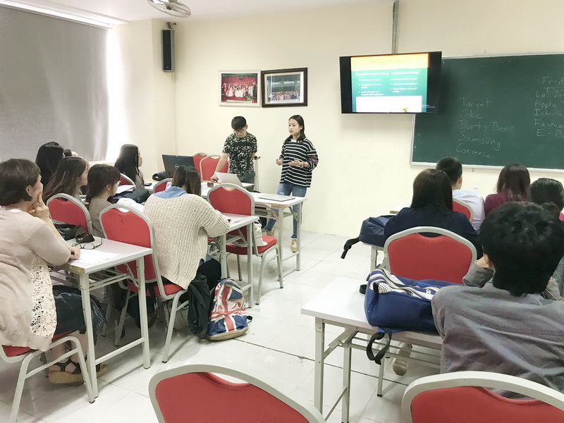 In addition, lecturer Susi also gave out practical case studies about large firms including Apple, Converse, and EBay to the students. The students then worked in pairs using the knowledge and marketing tools that they learnt in class to analyze the case studies, research marketing method which each enterprise using and its effectiveness. In the end, the students had the opportunities to present their projects in front of the class and collect useful comments from other student groups.
