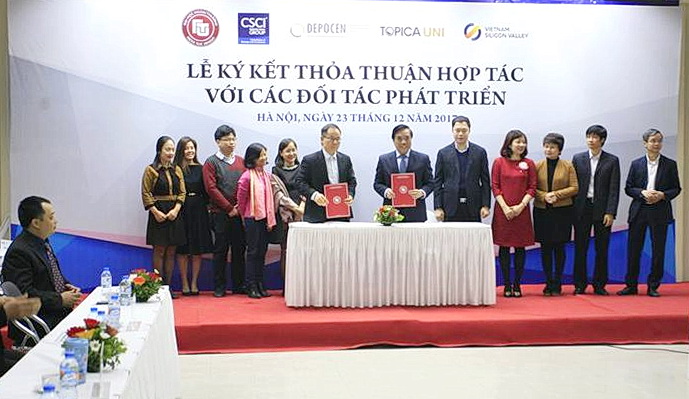 On December 23th 2017, Foreign Trade University (FTU) signed a cooperation agreement with four development partners: Development and Policies Research Center (DEPOCEN), CSCI Indochina Group, Topica Edtech Group, Vietnam Silion Valley (VSV).