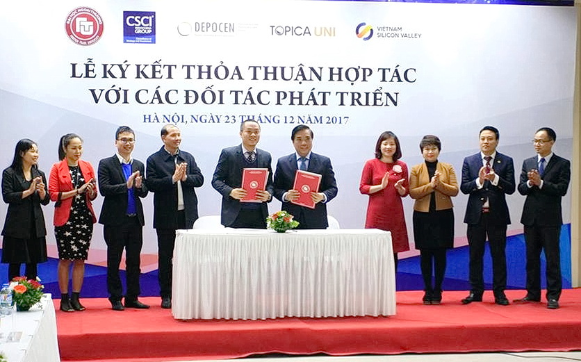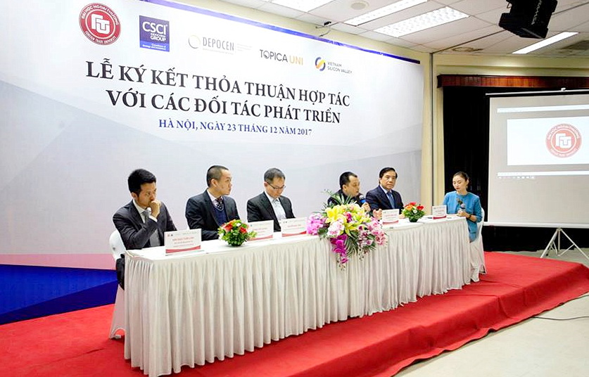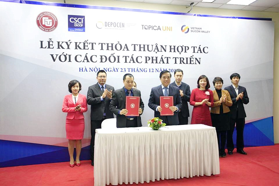 On December 23th 2017, Foreign Trade University (FTU) signed a cooperation agreement with four development partners: Development and Policies Research Center (DEPOCEN), CSCI Indochina Group, Topica Edtech Group, Vietnam Silion Valley (VSV).