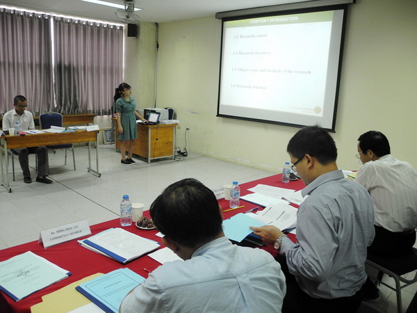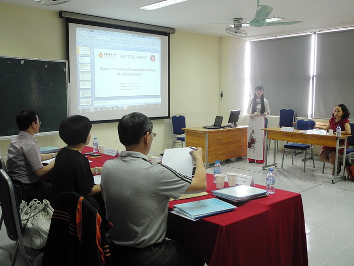 EMBA5 is the class that has the largest number of students: 42 students from various career sectors and different age ranges. Started in June 2014, after finishing 10 modules in class and spending time on their theses, 42 EMBA5 students had successfully defended their papers. Regardless of the lack of time due to job and other social commitments, the EMBA5 students still tried their best to carry on the research and finish their theses followed the US format. Students are suggested to choose the thesis topic, which is familiar to their daily basis in order to make the thesis become more practical.The full preparation had helped 3 students achieve the excellent outcomes with the scores from 90/100 and above. The rest of the class also met the requirement of the committee and will continue to adjust their papers according to the suggestion from committee members.