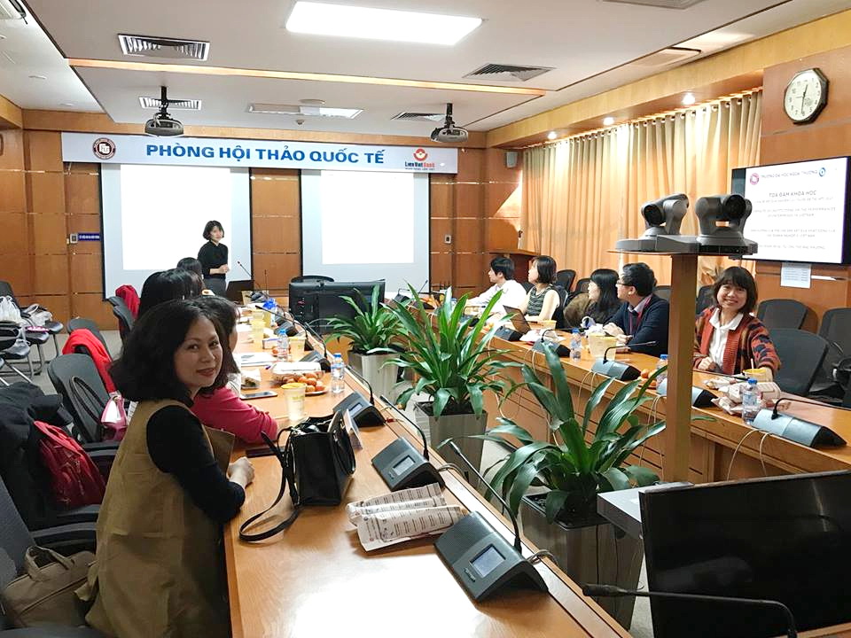 Dr. Chu Mai Phuong – Teacher of Faculty of International Economics presented the theme “Share the research result of subject WTI 2017: Institutional impact on the performance of enterprises in Vietnam”