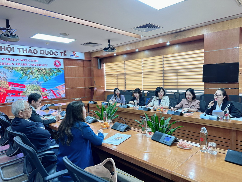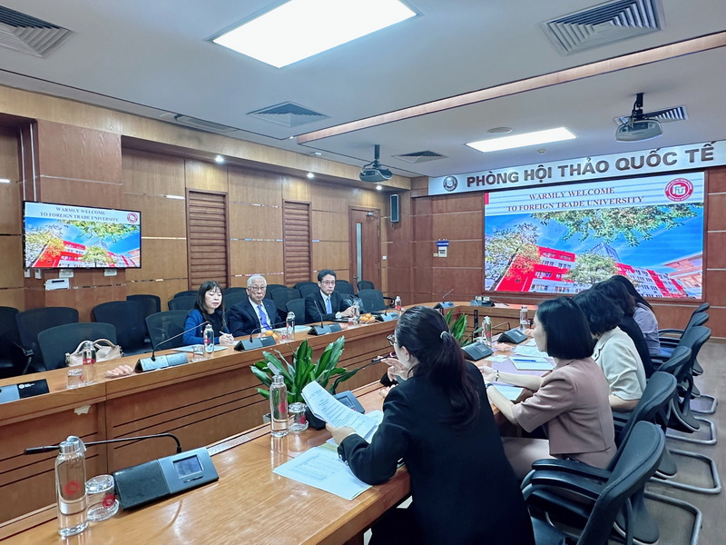 Receiving the delegation, Foreign Trade University was represented by Assoc. Prof. Dr. Le Thi Thu Thuy – President of the University Council, Ms. Tran Thi My Hanh – Head of the Financial Planning Department, Dr. Vu Thi Kim Ngan – Deputy Head of the Financial Planning Department, and other university specialists.