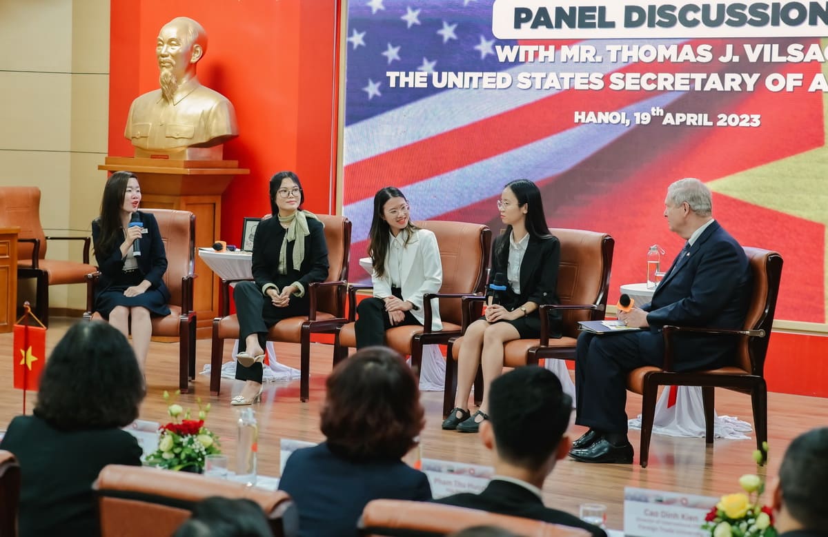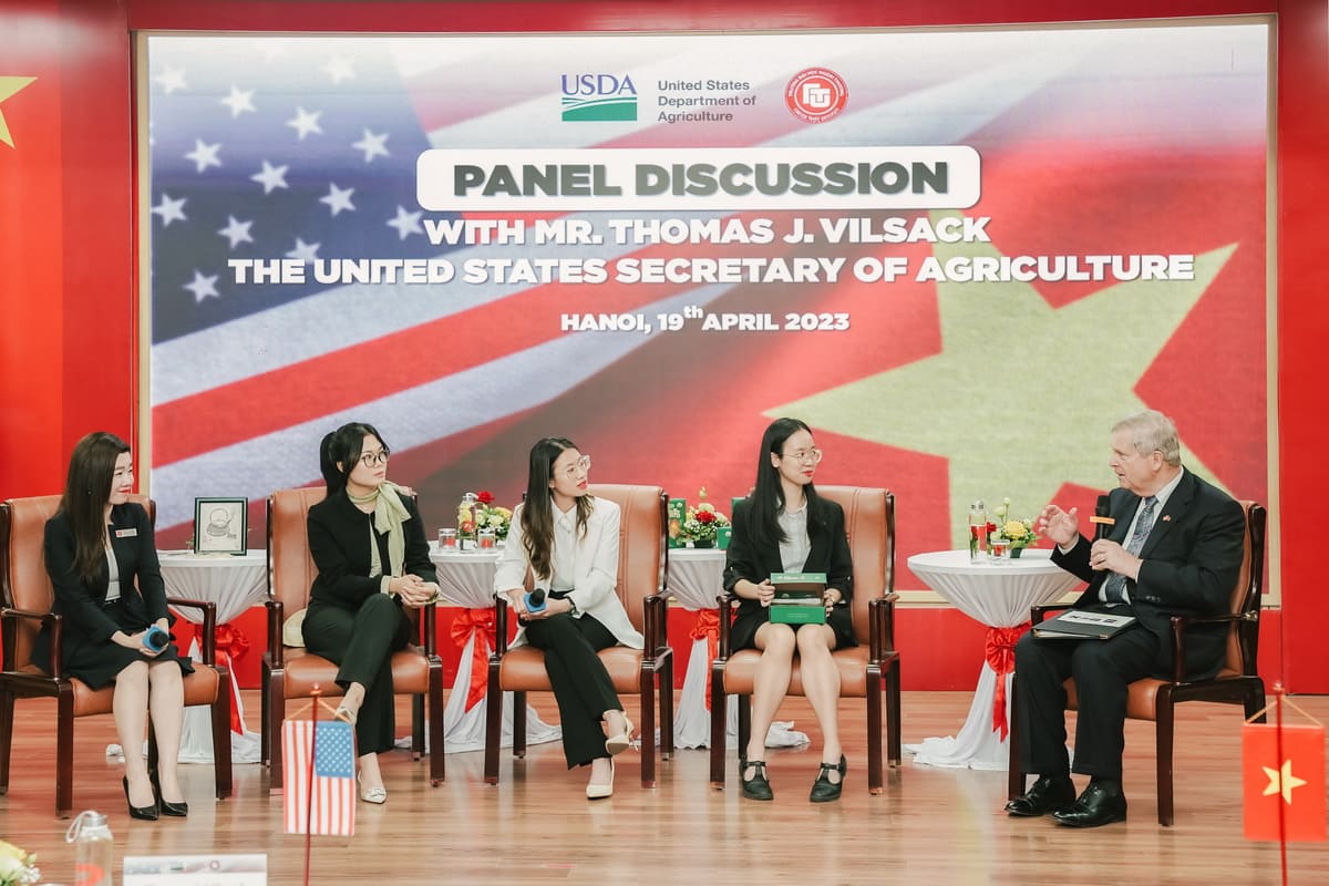 During this enlightening event, three talented female students from Foreign Trade University had the opportunity to share their personal stories, projects, and journeys as they pursue their passions. Their engaging presentations were warmly received by the US Secretary of Agriculture and the accompanying delegation.